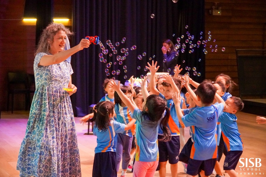 近日,SISB吞武里托幼部的学生举办了一场诗歌朗读活动。来自澳大利亚的作家Sara Kelly为孩子们带来了生动的诗歌和有趣的泡泡故事。活动中,孩子们兴奋地追逐和戳破泡泡,欢声笑语充满了整个教室。