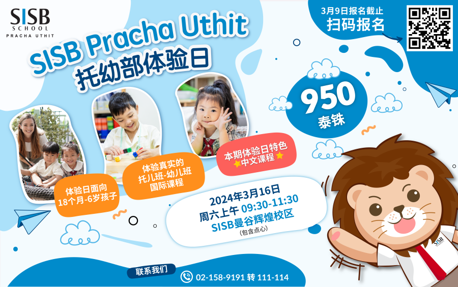 欢迎试课 | 3月16日托幼部体验日@SISB曼谷辉煌校区